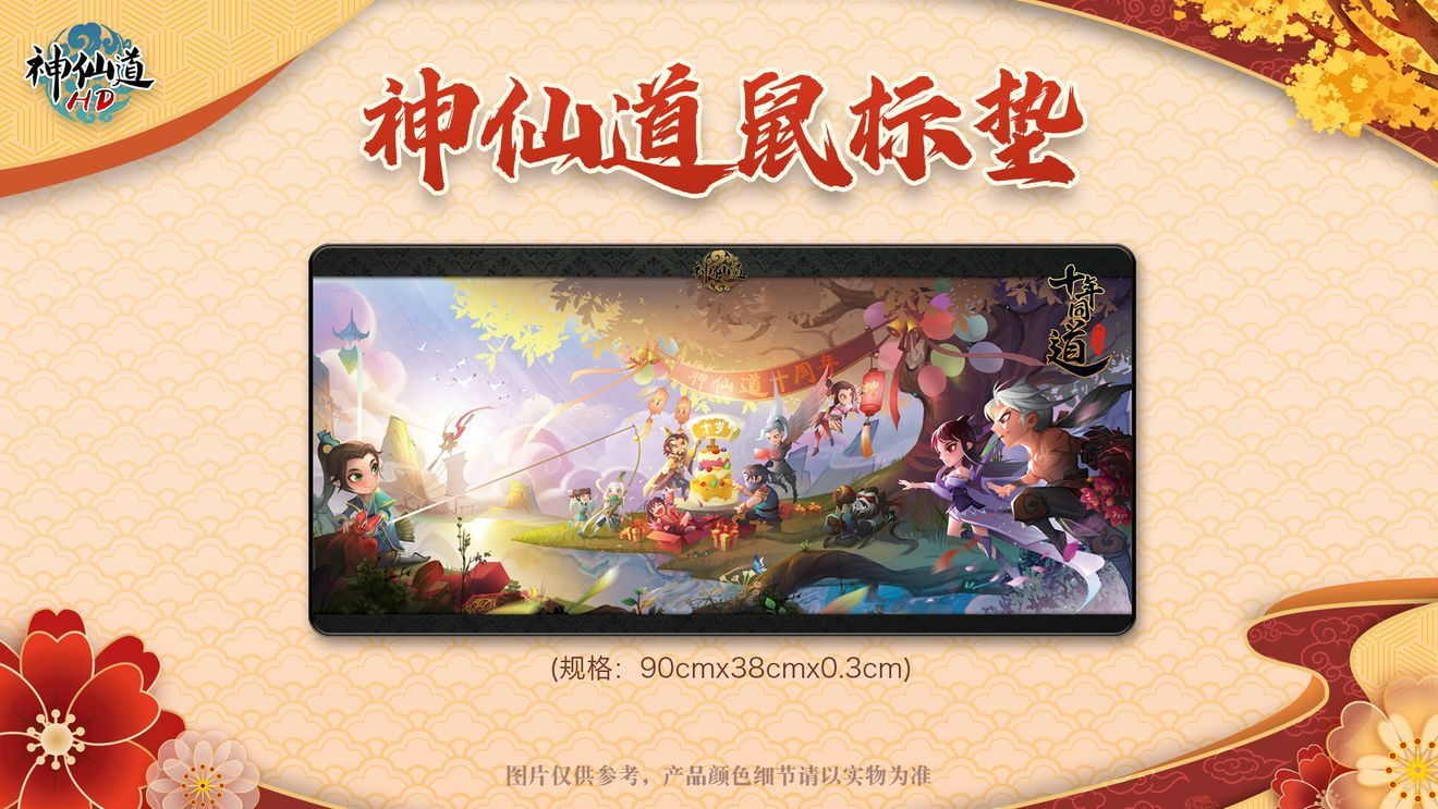 “神仙道十周年”纪念款,十年同道主题。整体采用精密编织,防滑底面,希望这款鼠标垫能让各位仙友在修仙时与您一直相伴。
