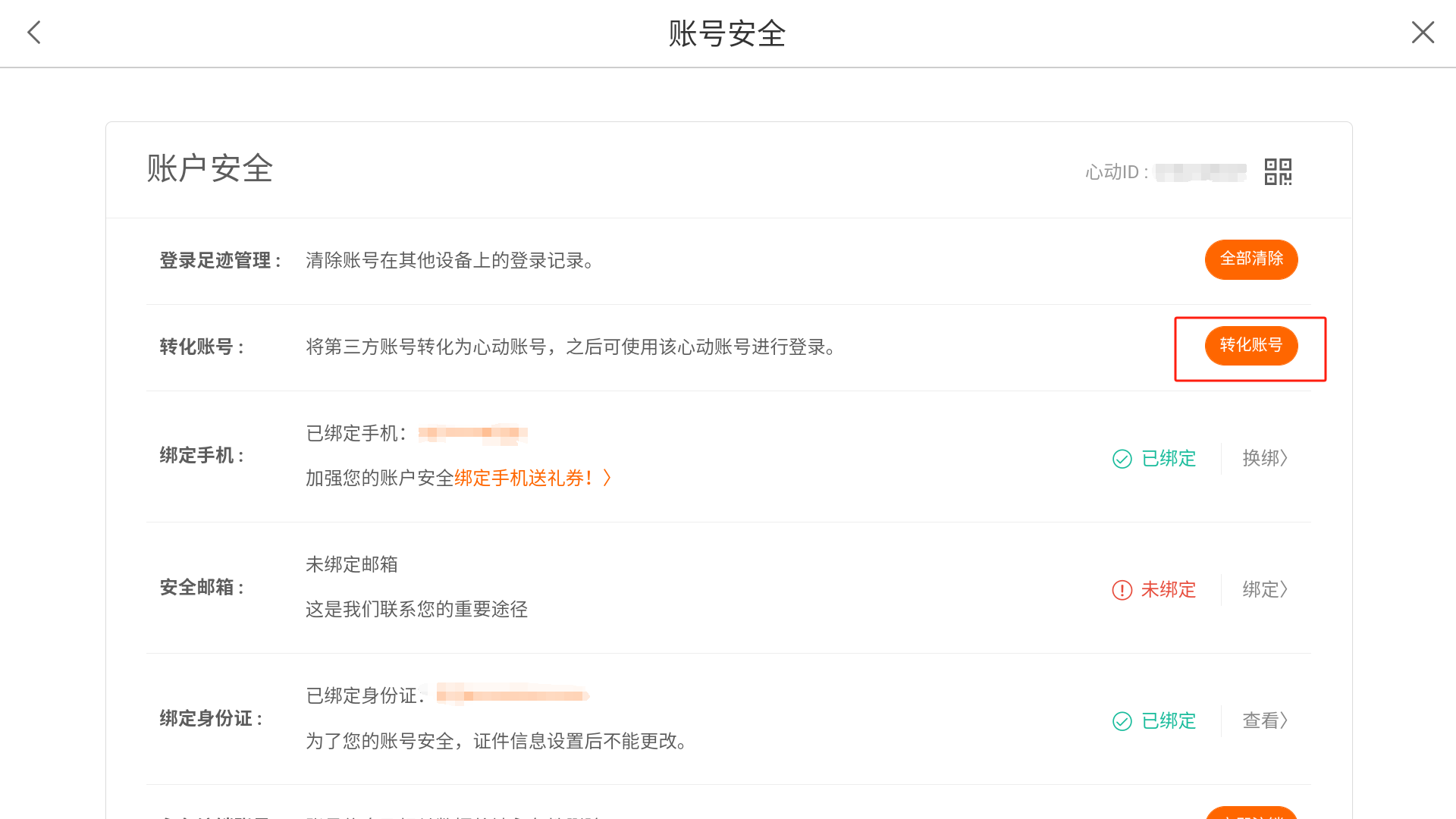 襙作步骤:前往【精彩活动】→【认证献礼】→【前往转化】→【账号安全】→【转化账号】完成转化。
